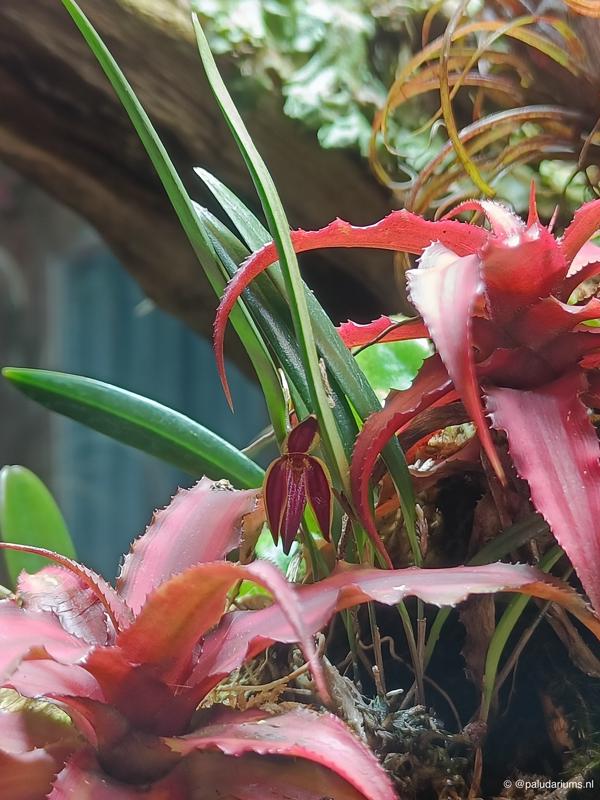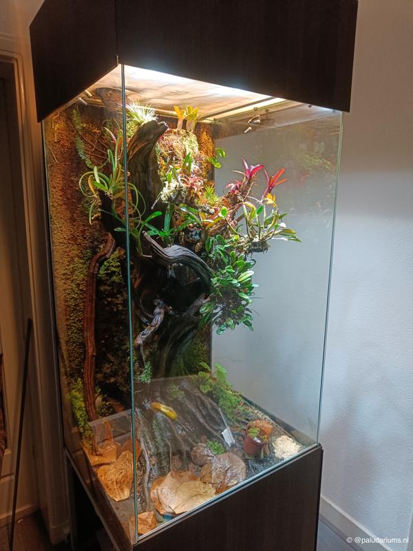 Paludarium from Rogier. This paludarium is in the living room. Dimensions: High 130cm Wide 70cm Deep 70cm date: 2023-11-03 Frogs: - None, in preparation Plants: - Orchids: - Pleurothallis sp. - Masdevallia sp. - Bromeliads: - Neoregelia sp. - Tillandsia: - Racinaea crispa